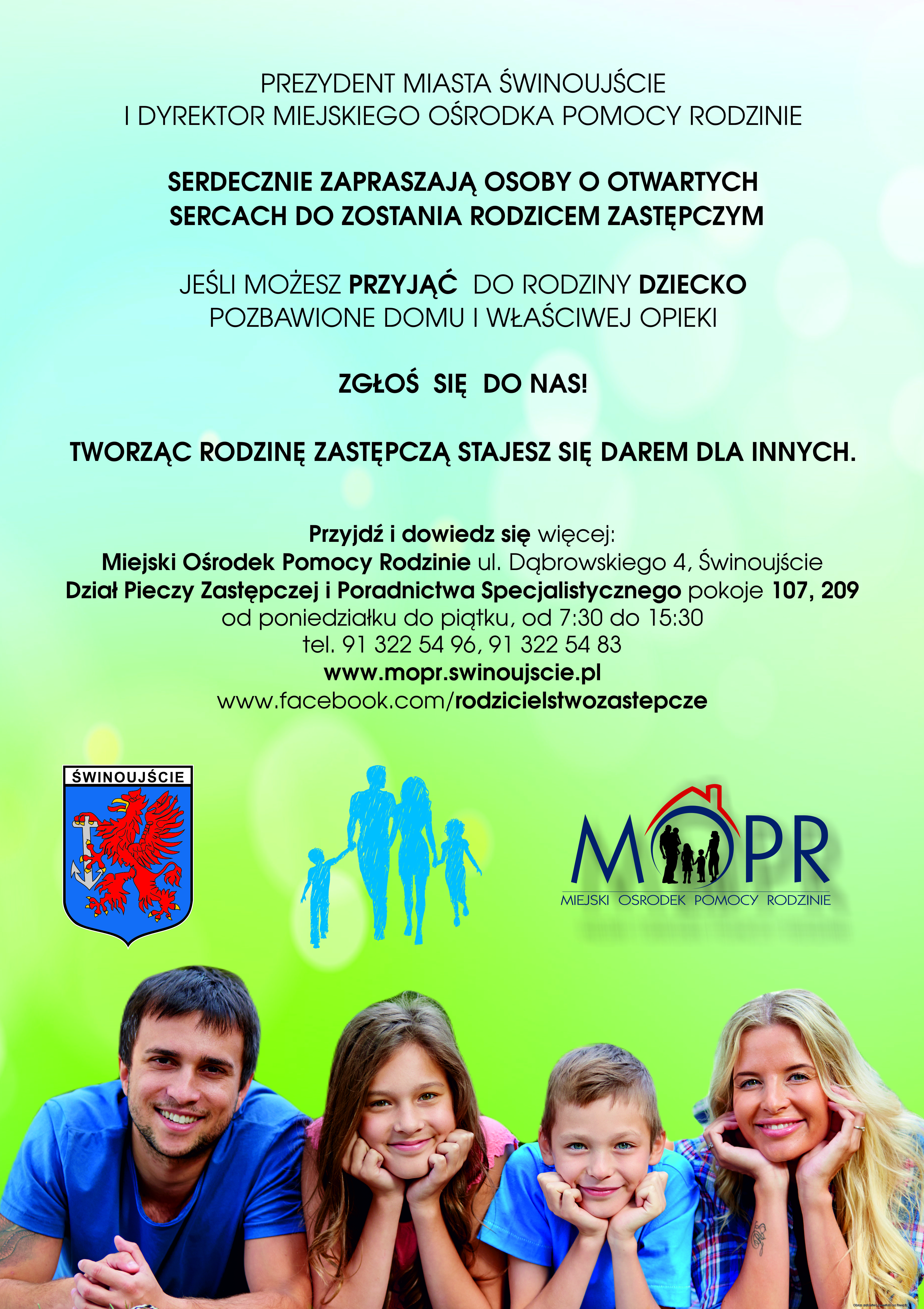 Jeśli temat Cię zainteresował, zapraszam do bezpośredniego kontaktu z pracownikami Działu Pieczy Zastępczej i Poradnictwa Specjalistycznego Miejskiego Ośrodka Pomocy Rodzinie w Świnoujściu (ul. Dąbrowskiego 4, pokój 107 I piętro, pokój 209 II piętro, tel. 91 322 54 96, 91 322 54 83) – CAŁY CZAS POSZUKUJEMY KANDYDATÓW NA RODZICÓW ZASTĘPCZYCH ?